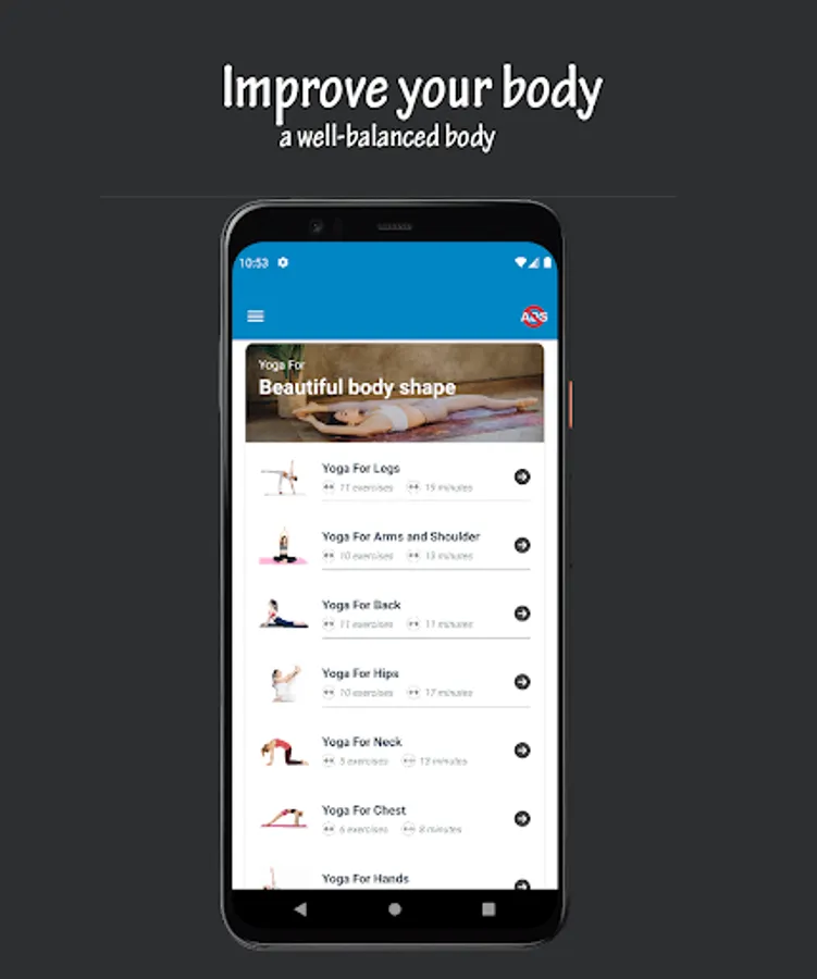 Yoga for beginners is free app to help you get stronger and more flexible!