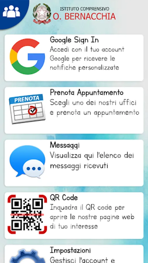 The Official APP of the comprehensive "O. Bernacchia" Institute of Termoli is designed to offer multimedia, innovative and one-click services. Suitable for families, pupils and staff.