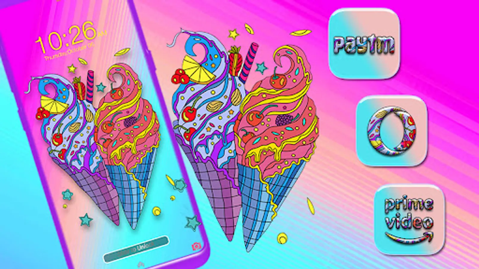 Colorful Ice Cream Cones Launcher Theme is a beautiful theme for Android that will certainly make your phone stand out. Personalize your phone by installing it now!