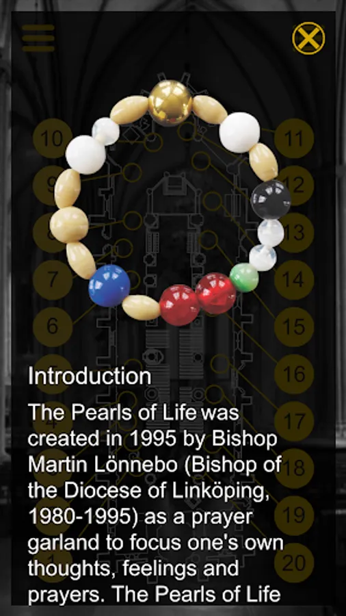 – films (in Swedish version only) in which the creator of the Frälsarkransen, Bishop Emeritus Martin Lönnebo, talks about the significance of each of the pearls in The Pearls of Life