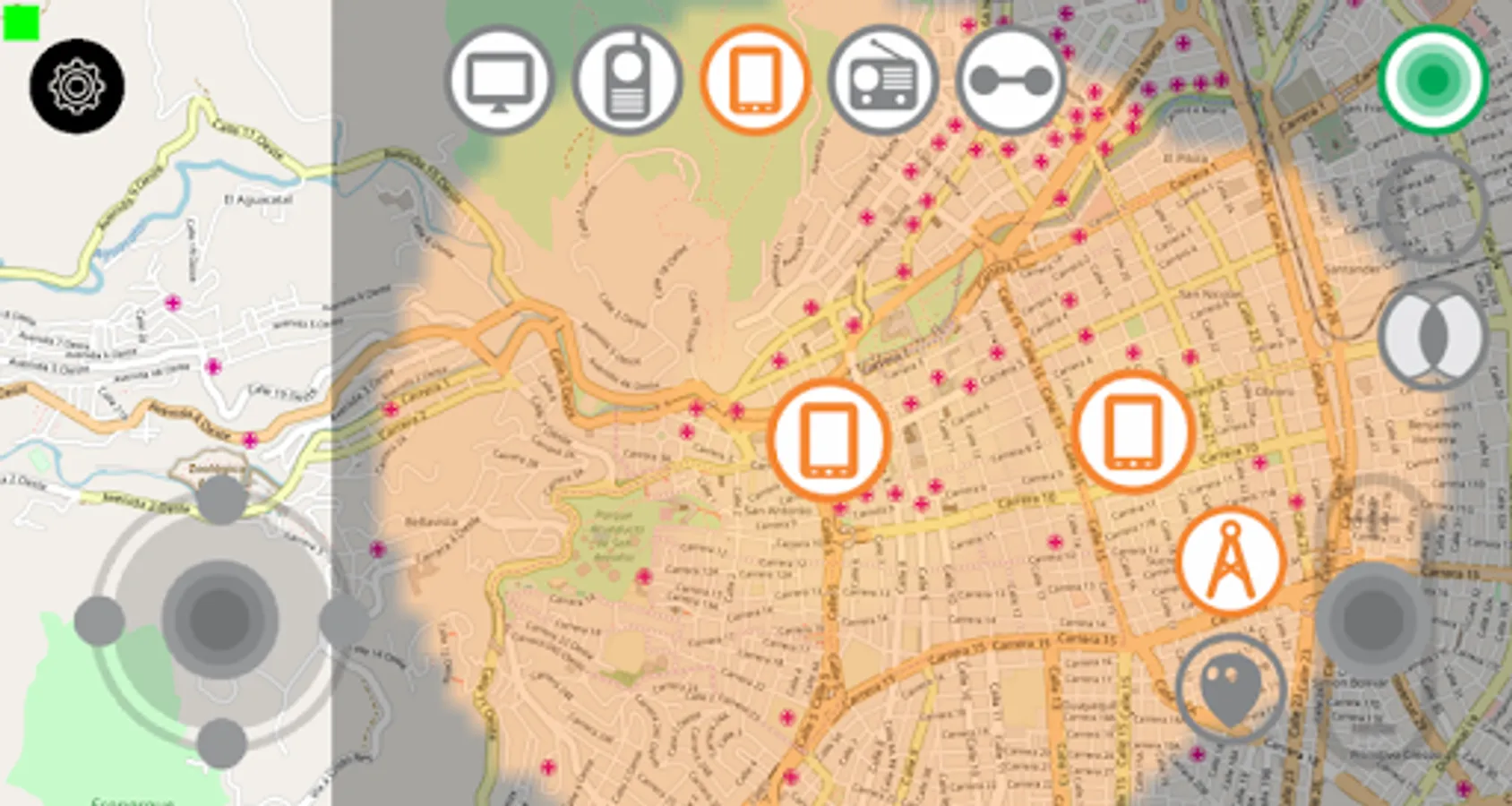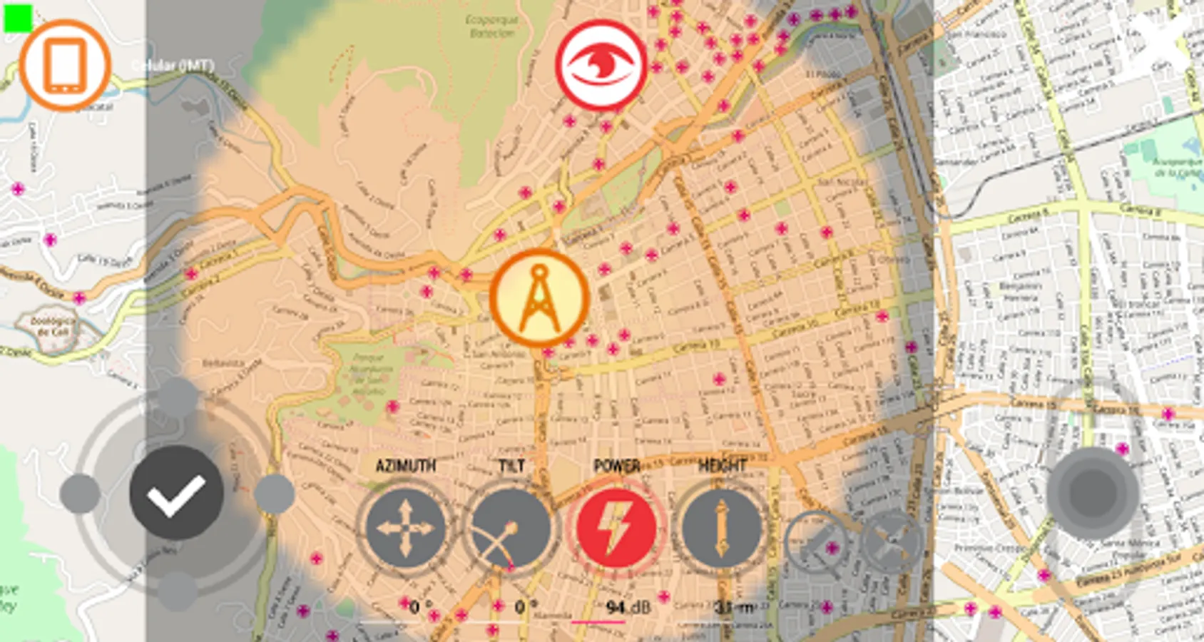 Planning simulator that allows estimating coverage, interference and better link areas for various services such as cell phone, television, point-to-point links, etc.