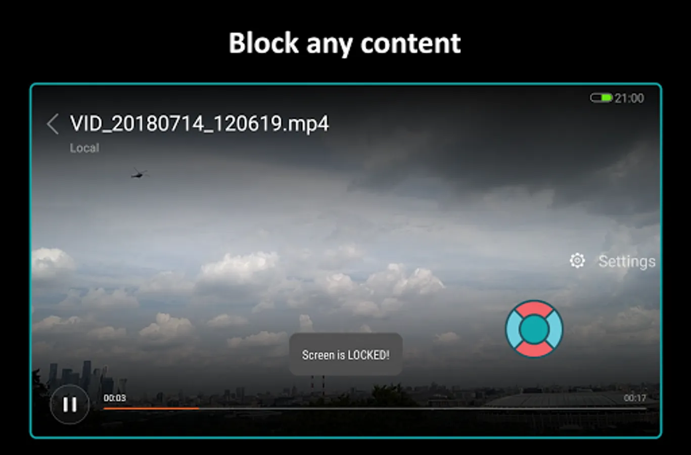 The bubble mode allows you to lock the entire screen by double-tap on the indicator. The indicator is displayed on top of all view and can be placed in any part of the screen.