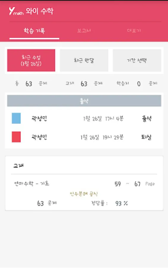 와이수학의 학부모 전용앱입니다.