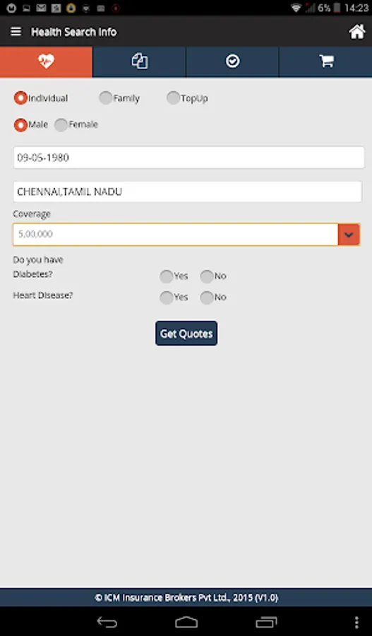 Our App allows the customers to get instant health insurance quotes from 15+ insurance companies along with online payment transaction. We are IRDA licensed brokers. Our app shows health insurance for individuals, for family, for senior citizens, for individuals who are Diabetic, Super Top Up policies, etc. Further, we can identify the best policy for you by discussing your needs and help you get the most suitable policy for you.