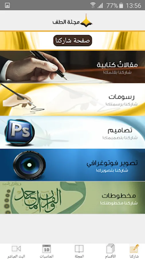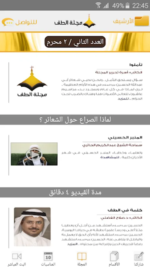 The magazine also features the talents of young people in the writing, design, painting, calligraphy and photography as the magazine collects the live broadcast of the boards and tables Hussainiyat times with their titles sources.