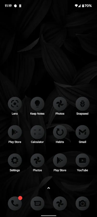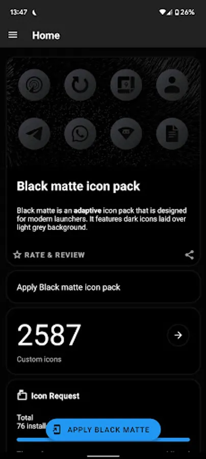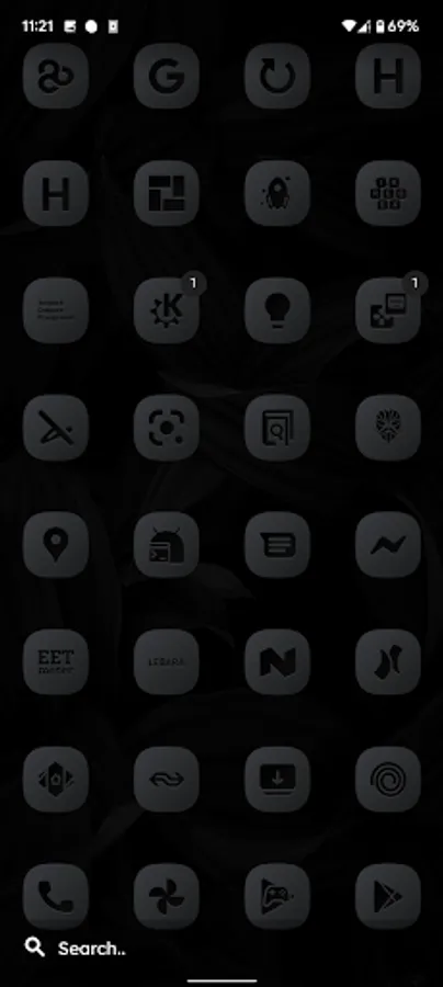 Black Matte is a dark grey adaptive icon pack that features dark icons over lighter background, giving your phone a neumorphic look.