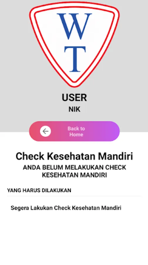 Aplikasi internal perusahaan untuk Cek Kesehatan Mandiri bagi karyawan PT. Weiss Tech