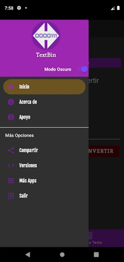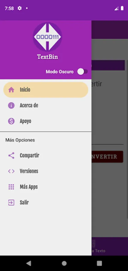 TextBin is an app that allows you to convert any text or number to binary code, but it also allows you to convert binary code to text.