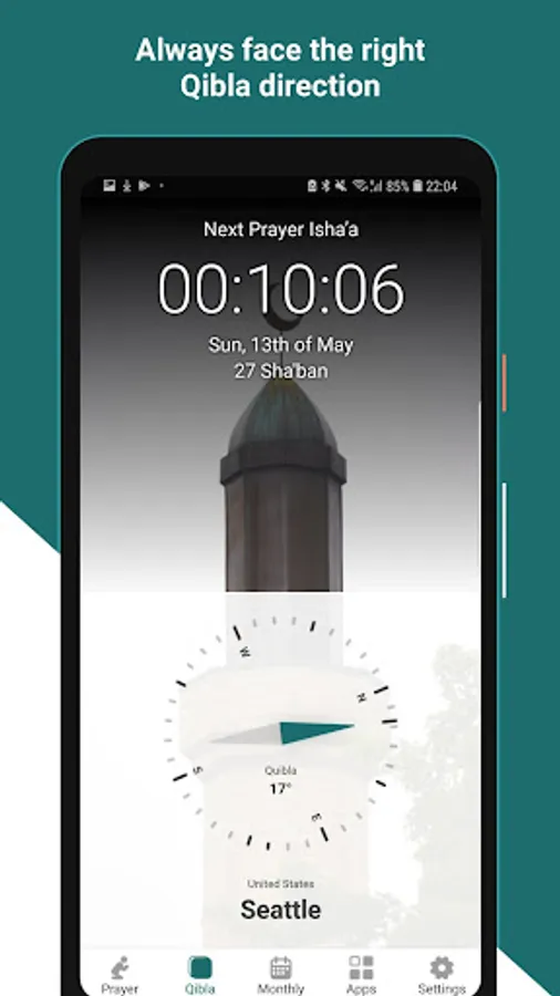 Idriss Mosque in Seattle part of the ICW (Islamic Center of Washington) Android app offers muslims living in Seattle with accurate prayer times along with other features.