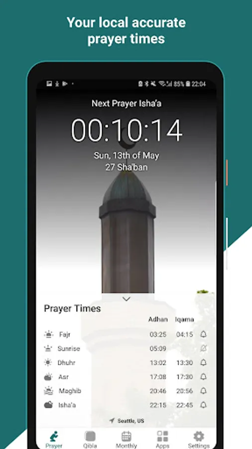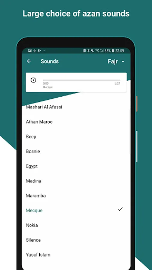- Beautiful Azan sounds recorded especially for the app.