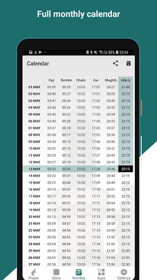 - Notification alert for prayer times