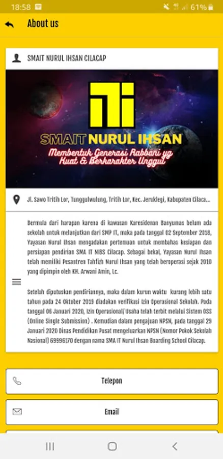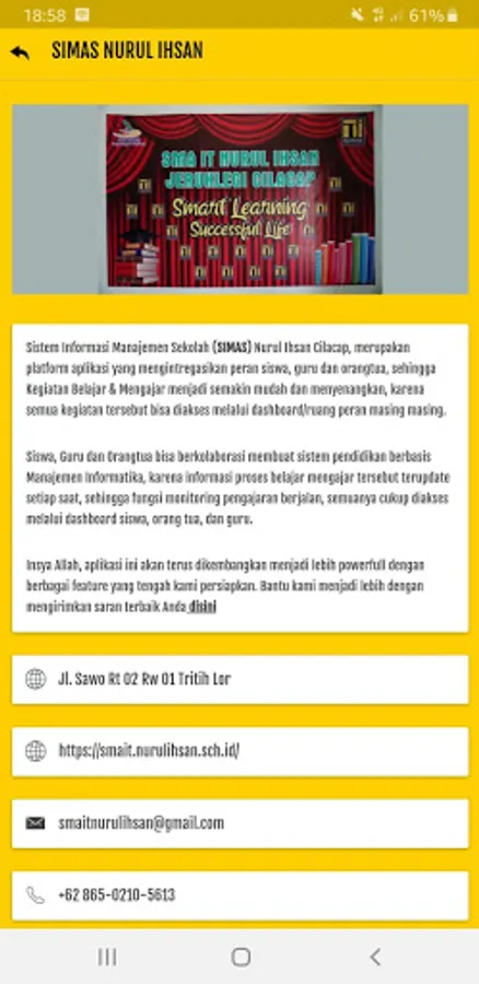 School Management Information System (SIMAS) NURUL IHSAN Cilacap, is an application platform that integrates the roles of students, teachers and parents, so that Learning & Teaching Activities become easier and more enjoyable, because all of these activities can be accessed through the dashboard / respective role space.