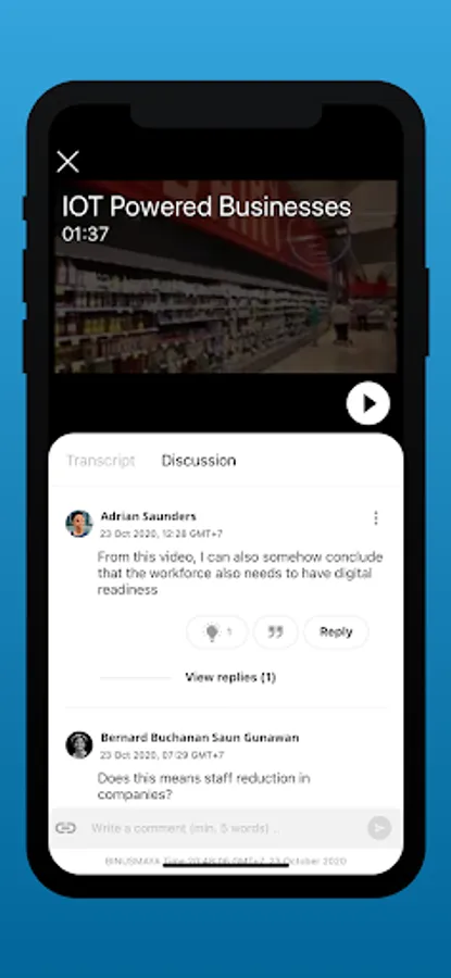 Course management enables the lecturer to add the materials, not only in a file type, the lecturer can also embed the link from any source supported by LTI technology, furthermore the lecturers can organize the course they have created. Meanwhile, students can simply access and participate in learning material by dropping the comment.