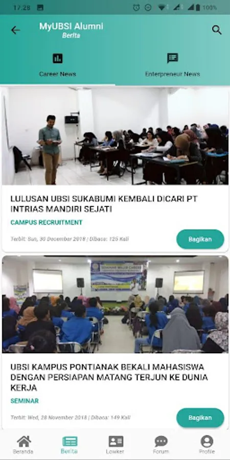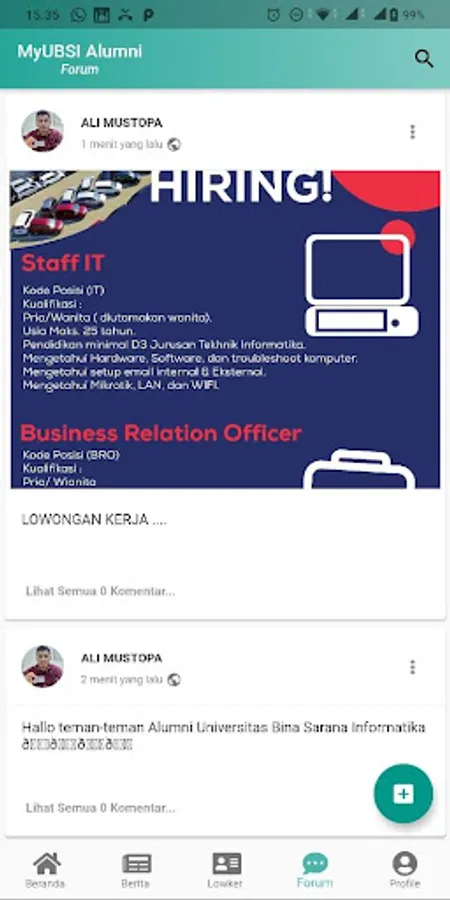 Mobile Application for Alumni of Bina Sarana Informatics University connects one another. Get information about career, entrepreneur and job openings