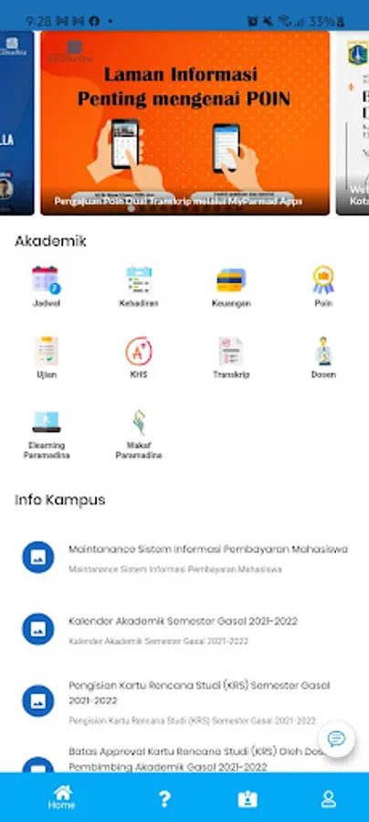 After logging in with your ID, use the app to get: - News / event information at Paramadina University. - Academic information and services (asik.paramadina.ac.id) - Lecture schedule, attendance, payment, grade transcripts, KHS, activity points, lecturer data. - Library Information; catalog, borrowing.