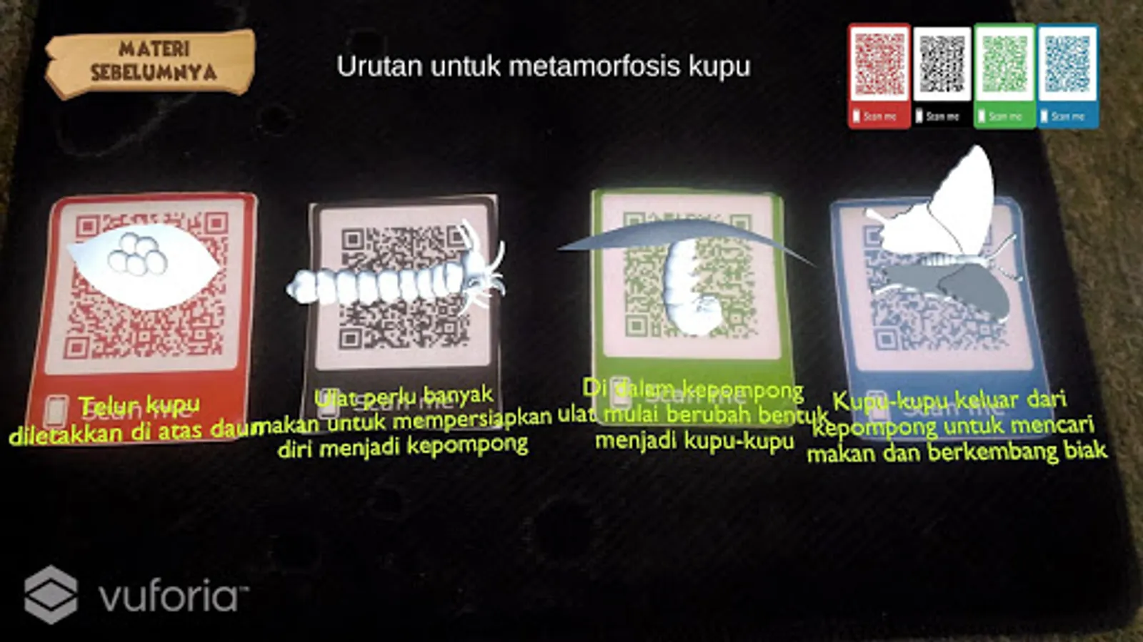 Insect metamorphosis learning application is an application for learning insect metamorphosis in which there are materials, quizzes, and Augmented Reality features so that learning becomes more interesting