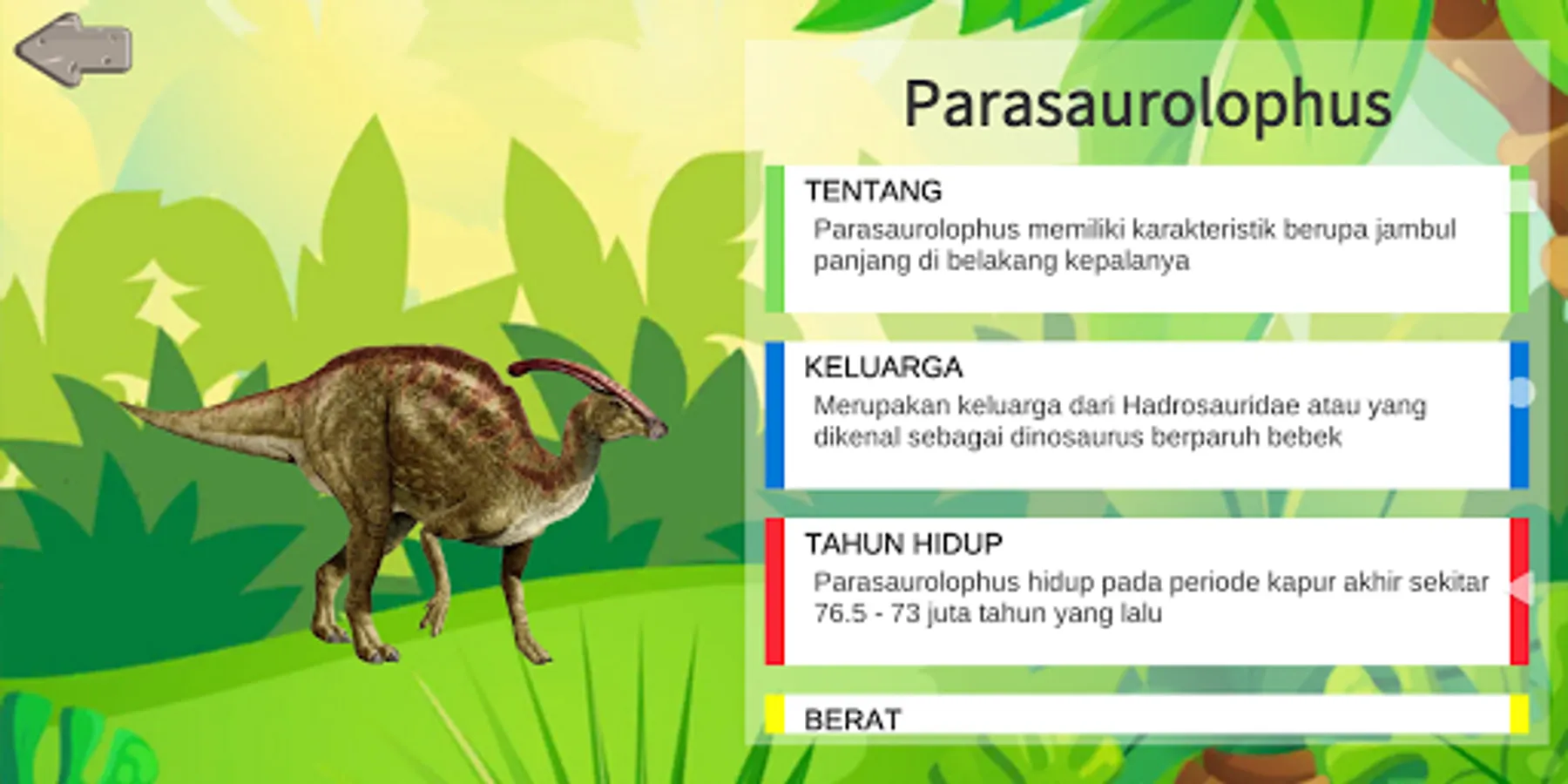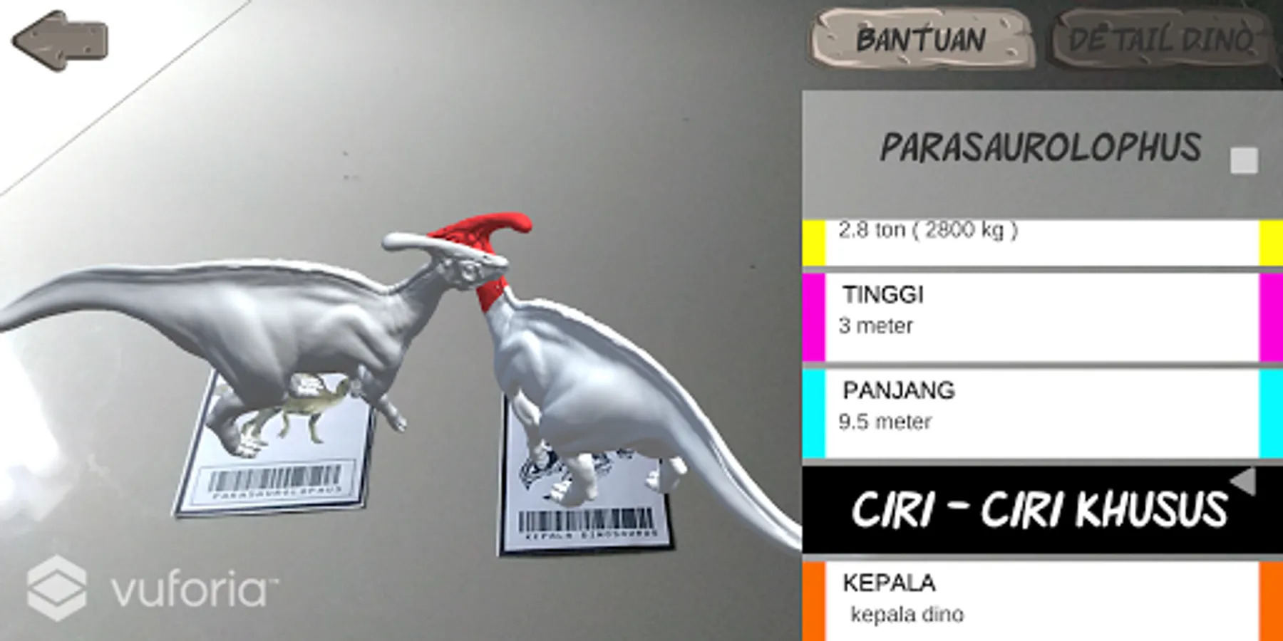 This game is an educational game that contains several herbivorous dinosaurs that have been provided by utilizing Augmented Reality technology with the Multi Marker method.