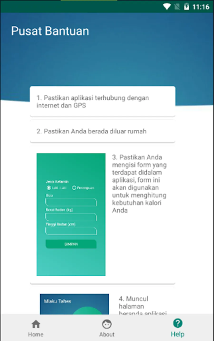 Mlaku Tahes is an application for monitoring calories both calorie needs and calories released based on footsteps. Mlaku Tahes is equipped with accelerometer sensor and geolocation sensor