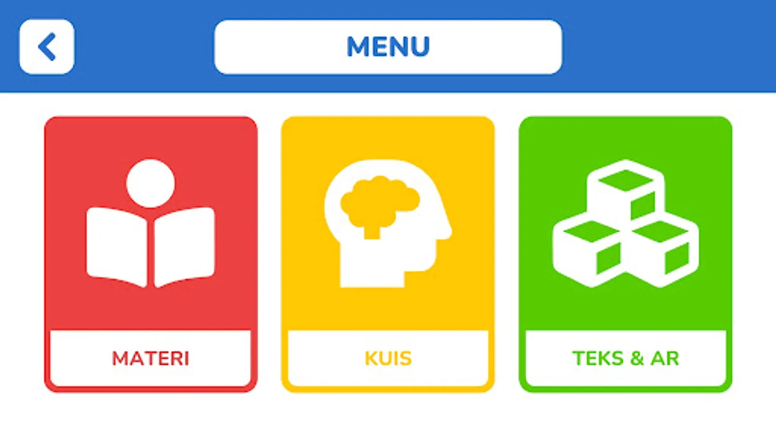 In this application there are three menus, namely Material Menu, Quiz Menu, and Text & AR Menu.