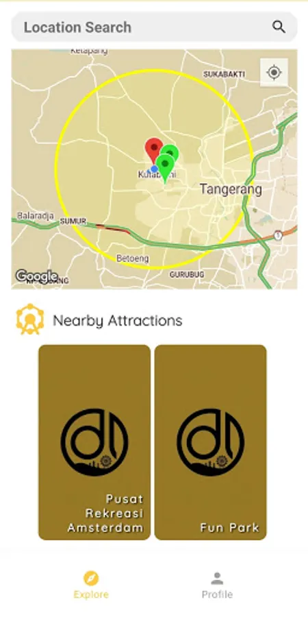 An application that can search for nearby tourist attractions based on the user's location from various places.