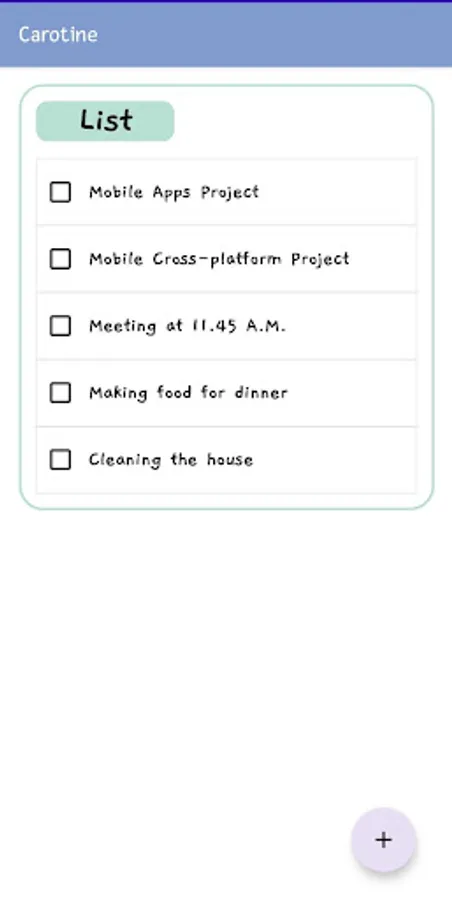 What is CAROTINE? CAROTINE is a to-do list application, so all you have to do is enter what you want to do. You can edit and delete the to-do list when the job is finished.
