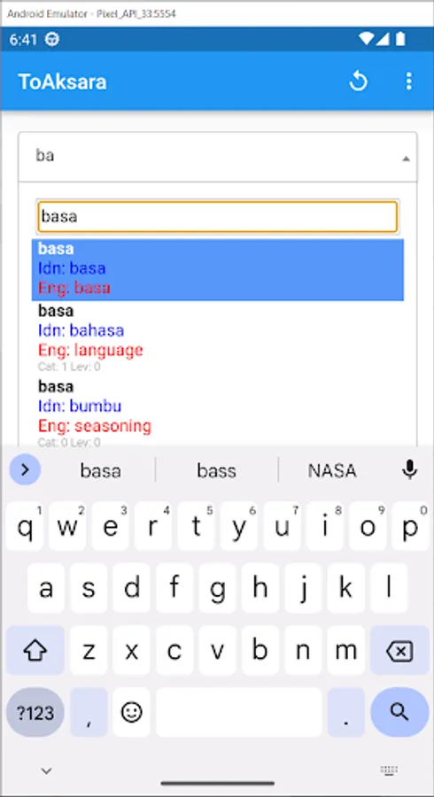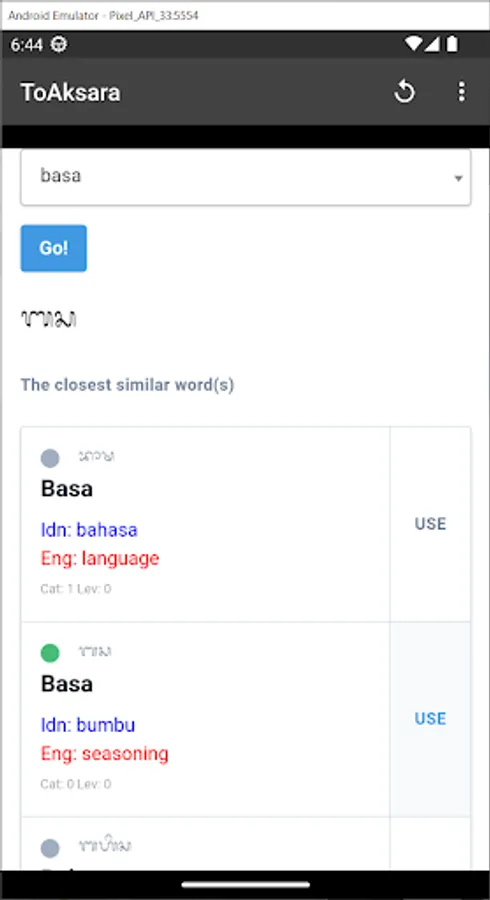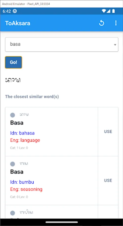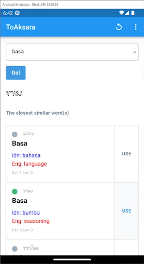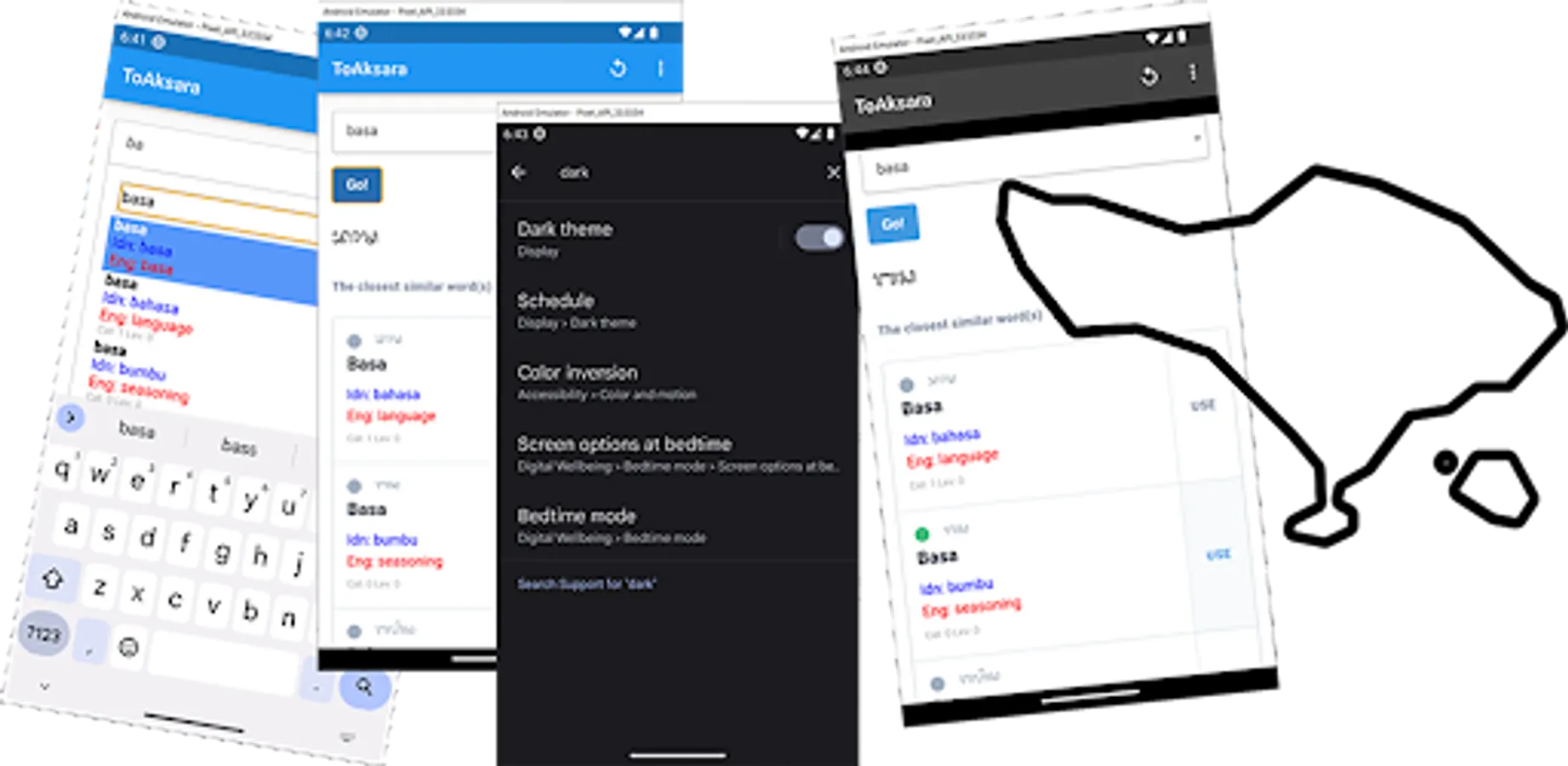 An app for conversion to Balinese Script (Aksara) with additional translation information from a dictionary by Denpasar City Cultural Office.