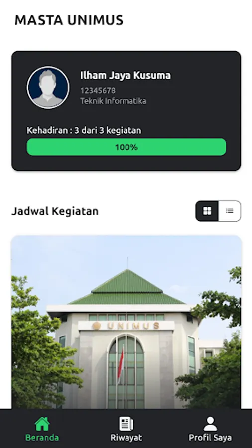 Aplikasi presensi yang digunakan oleh mahasiswa baru Universitas Muhammadiyah Semarang selama kegiatan MASTA PMB 2022.