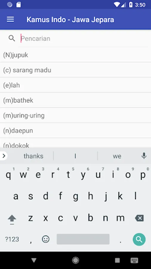 Java-Jepara dictionary based on android is a digital dictionary application with data sources from the results of the Jepara UNISNU Beginner Lecturer (PDP) Study