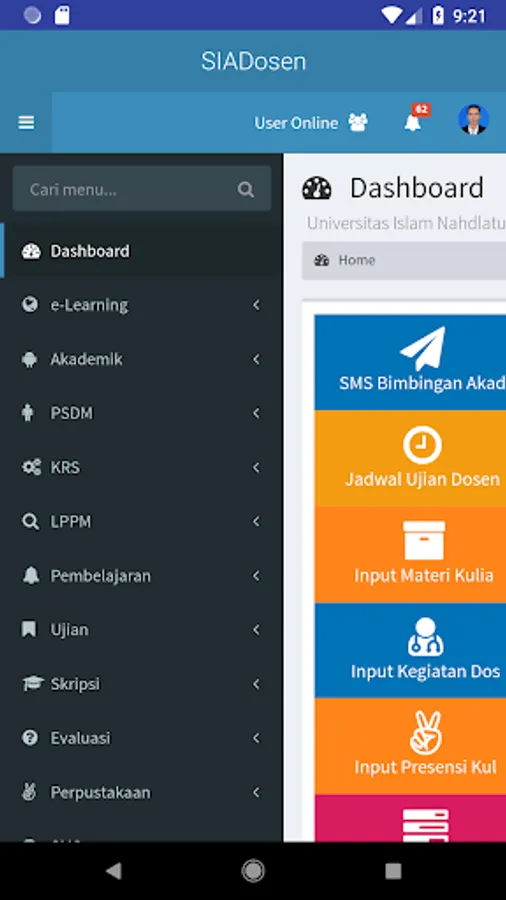 Academic Information System data management Nahdlatul Ulama Islamic University lecturer Jepara. The system was developed to meet the needs of lecturers UNISNU Jepara in terms of the implementation of the Tri Dharma University, more specifically, the system is also developed for the management of personal data professors, and classroom management courses, implementation of learning and elearning, assessment of students and others.