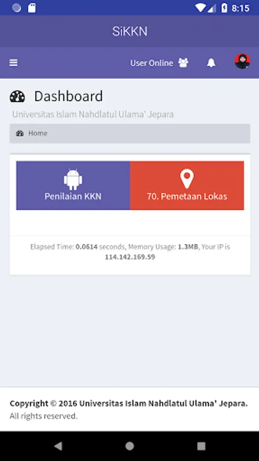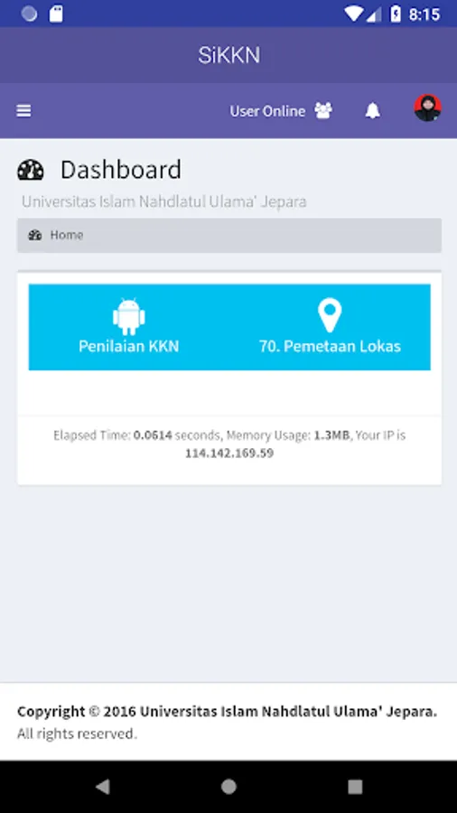 Management information system for Real Work Lectures in the Nahdlatul Ulama Islamic University of Jepara. This system was developed to facilitate KKN participants (students, field facilitators and secretariats) to manage data on KKN activities. This system has also been integrated with the Academic Information System (SIAKAD), SIAMa, SIADosen UNISNU Jepara so that it is expected to facilitate all activities wherever and with smartphone devices
