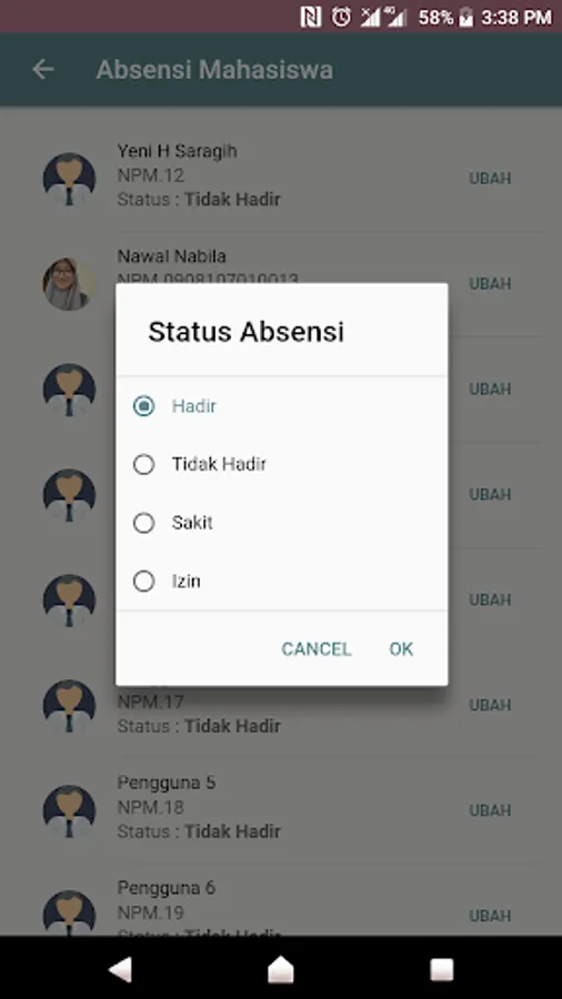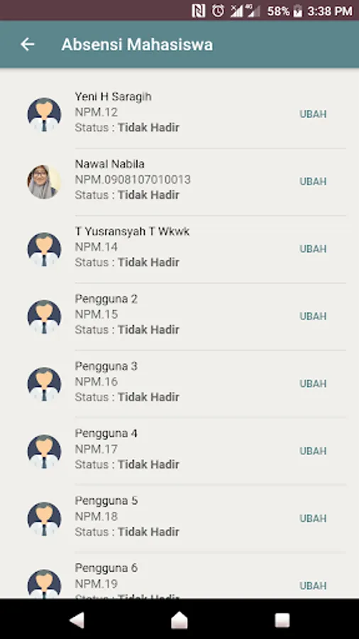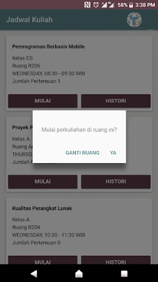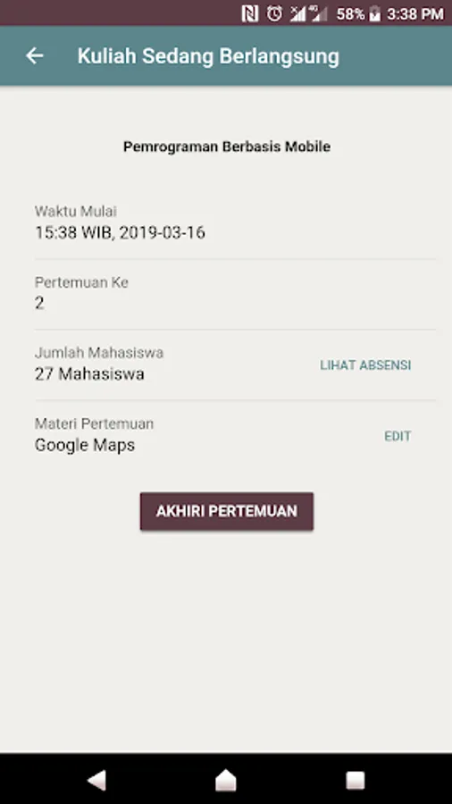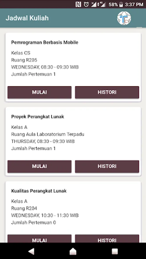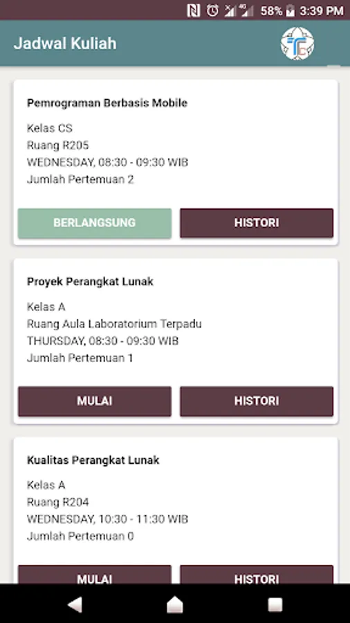 Application version of the lecturer for Lecture Attendance System at the Faculty of Engineering, Syiah Kuala University.