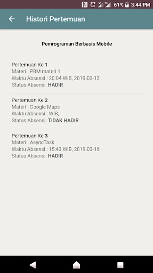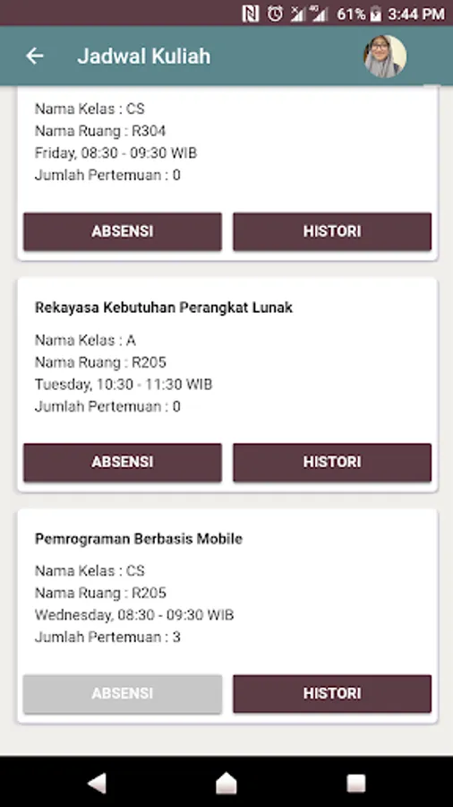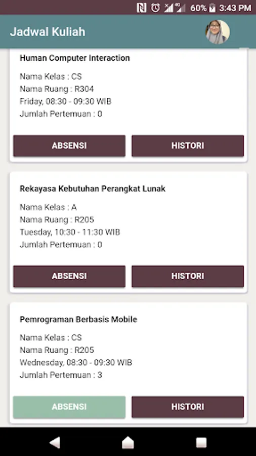 Student version application for Lecture Attendance System at the Faculty of Engineering, Syiah Kuala University.