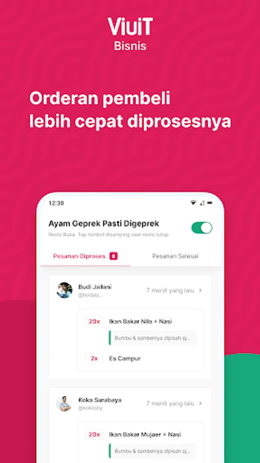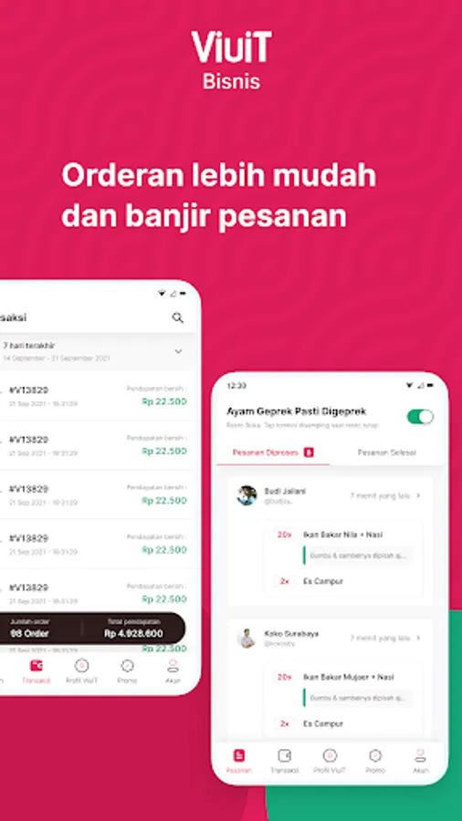ViuiT Bisnis is a merchant application from ViuiT to help restaurants develop and manage their business in the culinary field. Apart from being used to receive online orders, ViuiT Bisnis can also facilitate merchants in promoting their business.