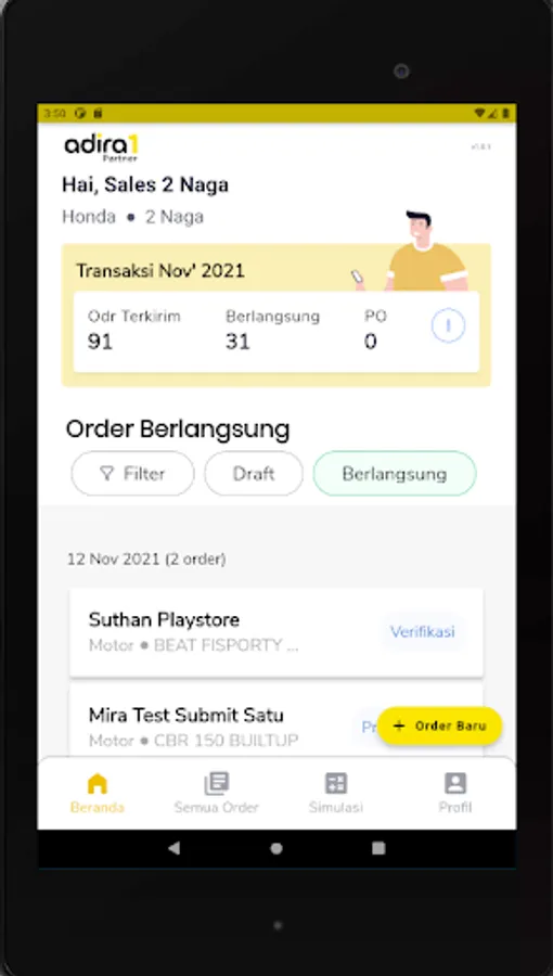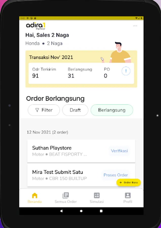 Through the Adira1Partner Application, channel partners can easily monitor every order that has been given to Adira Finance.