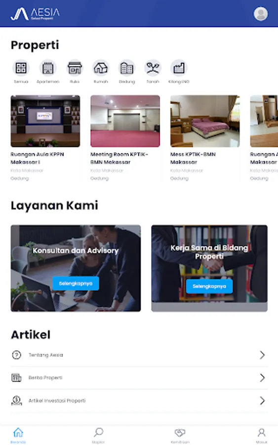 With a wide selection of assets and services, potential partners can work together safely, easily, and of course according to their needs, from residential needs to business activities and even to asset consulting services for private corporations, BUMN, BUMD and Ministries/Institutions .