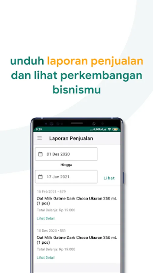 Unduh laporan penjualan baik mingguan atau bulanan. Lihat juga siapa saja pelanggan di toko kamu