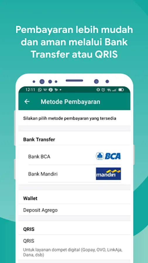 Make payments easily and securely via bank transfer or QRIS