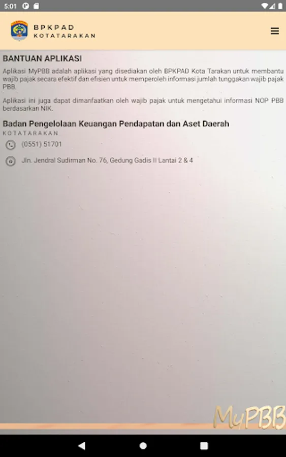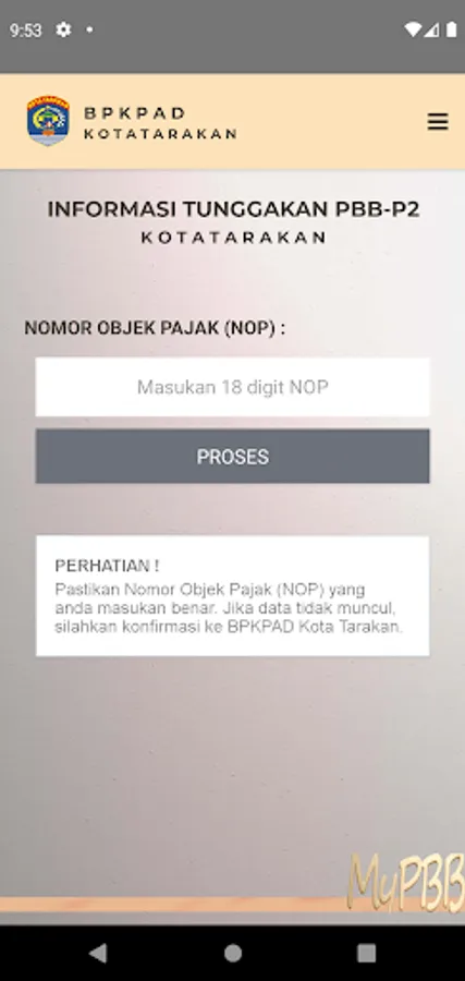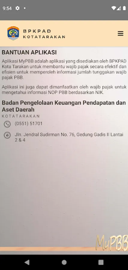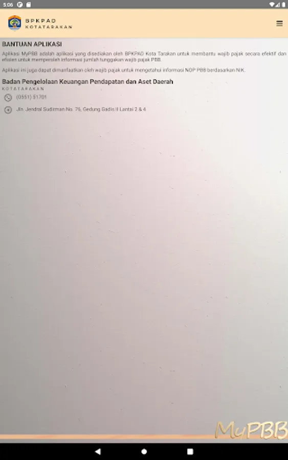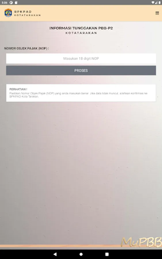 The Tarakan PBB SMART application is an application provided by the Tarakan City BPKPAD to help taxpayers effectively and efficiently obtain information on the amount of PBB tax arrears.
