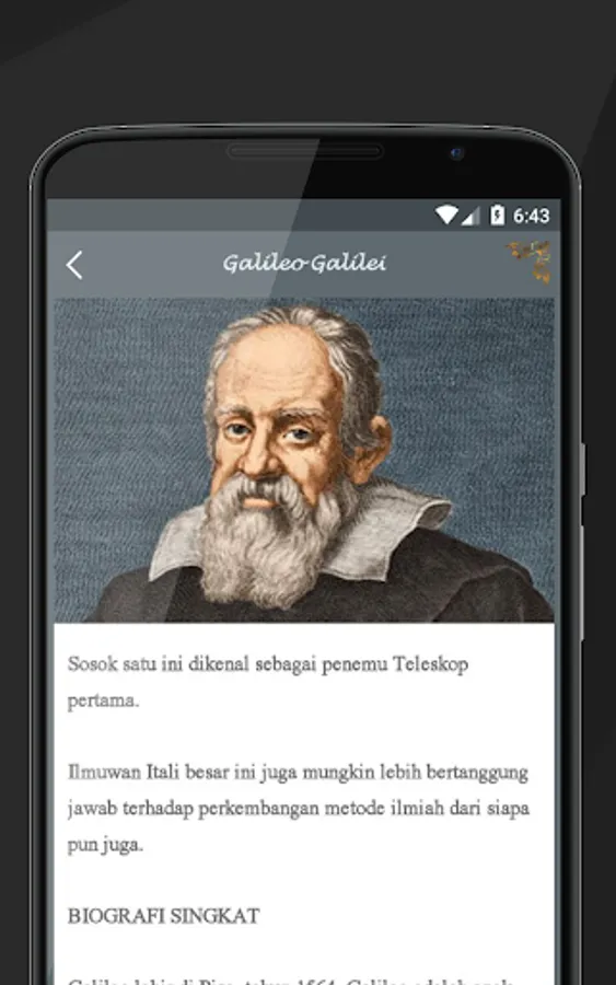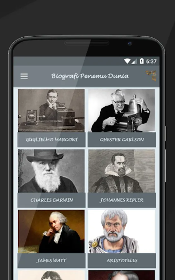 The "Biography of the World Inventor" application contains information on a list of figures who find or create tools that are beneficial to human life.