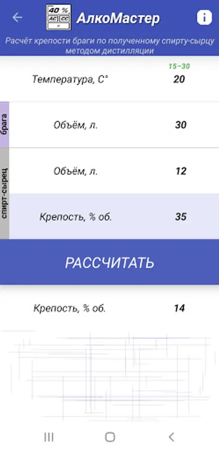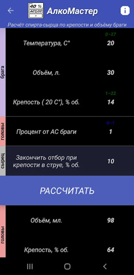A functional and easy-to-use tool for calculating important parameters in the process of making homemade alcohol.