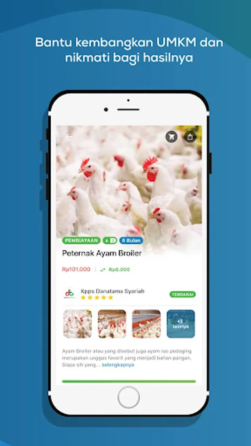 We want you and the global community to easily become financiers and take a direct part in empowering SMEs in Indonesia in a Sharia manner. Make your excess assets not only grow with attractive returns, but also bring blessings to you and businesses around you. Imagine if some of your assets turn out to be productive capital for others, let's grow many entrepreneurs to emigrate without usury.