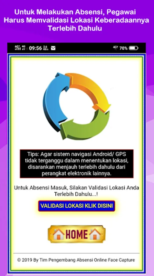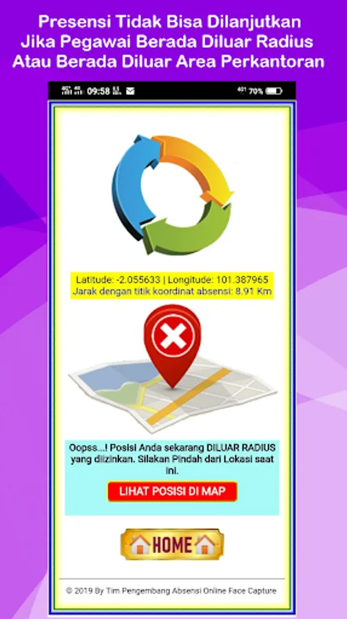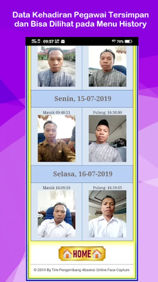 Presenting the Ease of Employee Time Management and Employee Management Systems simply by Using a Smartphone. Utilizing GPS and Camera technology available on Android / Smartphone. So it can replace traditional attendance machines. Employees can only do the Daily Attendance Recording if it is already in the Office environment and proven by Face Scan.