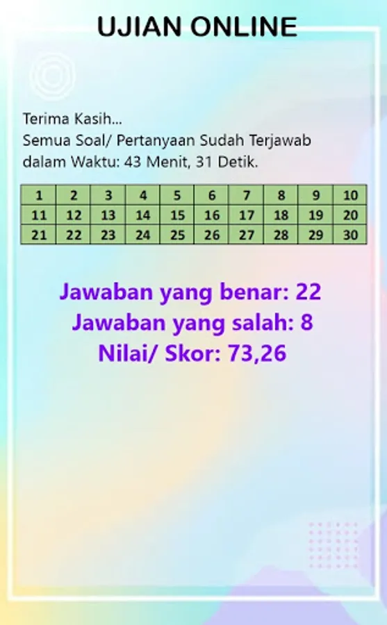 The Madrasah / School Online Exam application that we provide is very easy to use. In addition, the features available are also very simple with an easy flow so that it is very suitable for application in high schools.
