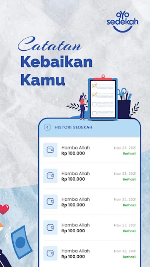 You can monitor the record of kindness through the Donation History. Let's plant as many good seeds as possible through AYOSEDAKAH.