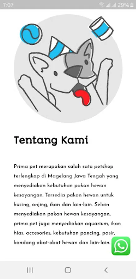 Prima pet is one of the most complete pet shops in Magelang, Central Java, which provides pet feed needs. Animal feed is available for cats, dogs, fish and others. Apart from providing pet food, Prima Pet also provides aquariums, ornamental fish, accessories, fishing rods, sand, cages for veterinary medicines and others.