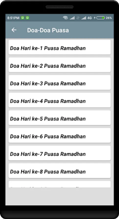 Complete Ramadan fasting prayers application is a collection of Ramadan fasting prayers from the first day of fasting until the celebration of Eid al-Fitr. In this application Muslims can see the fasting schedule starting from dawn, time of breaking of fast to breaking the fast in all regions throughout Indonesia. In addition, Muslims can also see the 5-time prayer schedule in all regions in Indonesia.