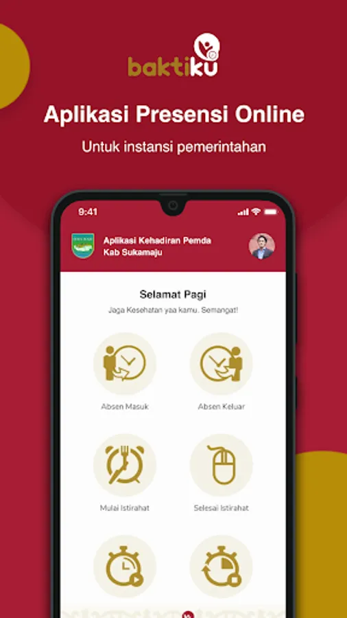 Baktiku is ready to help monitor and manage employee attendance starting from those of you who are in government, agencies, schools or institutions throughout Indonesia. Enough with selfie absences employees can record attendance, overtime hours, official visit activities, and daily tasks through the Baktiku android app attendance. More hygienic! No need to queue long to share fingerprint attendance machines.