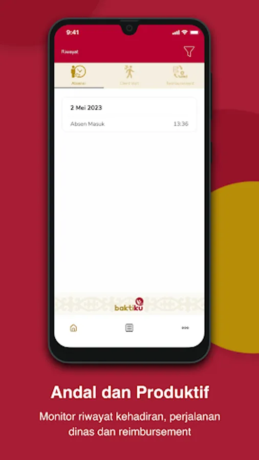 Real-time integrated data . Admin easily tracks employee attendance from the dashboard at Baktiku.id. Admins can also download attendance reports and official visits with just one click. The finance department can easily access and download reimbursement reports at any time. All processes are digitally fully documented .