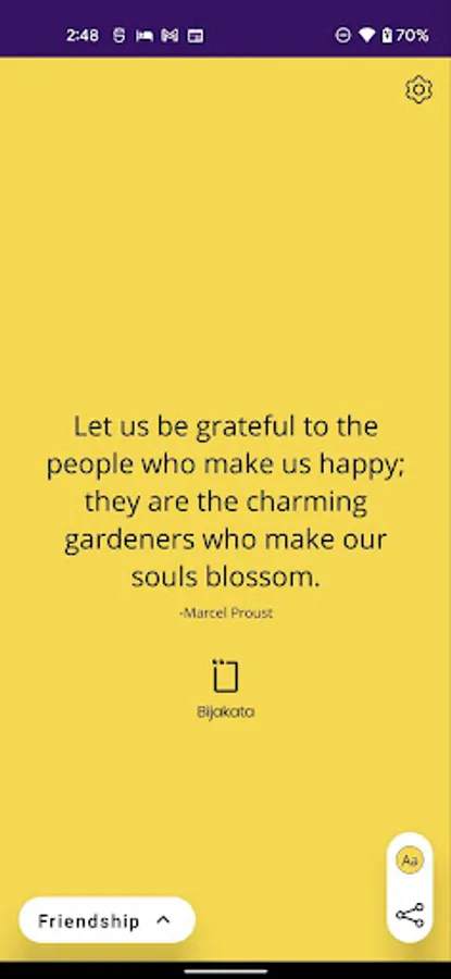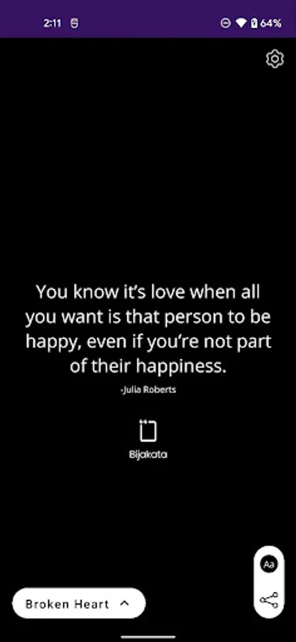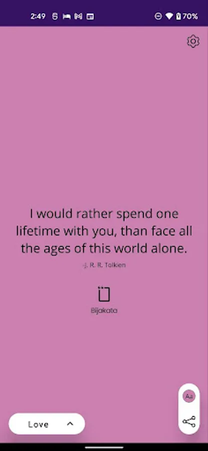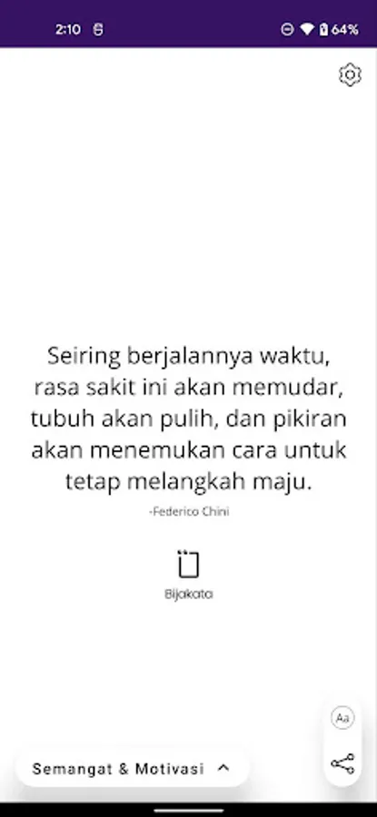 Bagikan quotes yang menurutmu bisa menginspirasi dan memotivasi orang lain menggunakan fitur share yang tersedia dalam aplikasi. Fitur ini memungkinkanmu untuk membagikan quotes dalam bentuk gambar atau text.