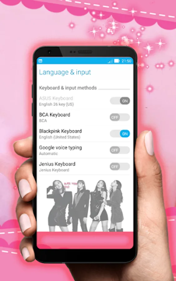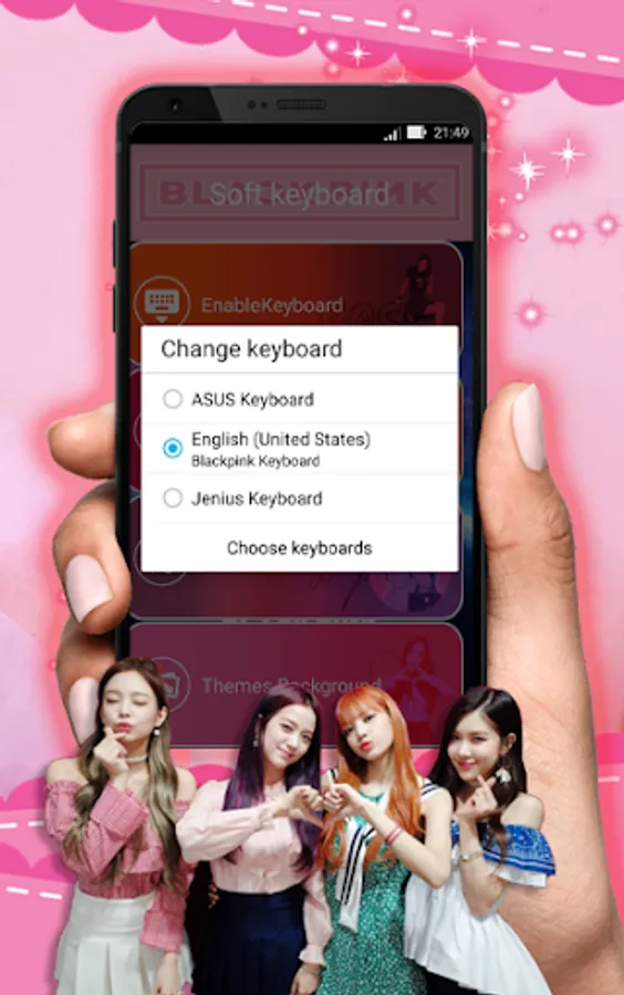 The “Blackpink Keyboard Theme” app provides flexibility to choose the keyboard theme from app’s built-in keyboard themes or you can create your custom theme by choosing your favorite image for background. You have to just enable the keyboard from the App. You can choose a picture from your gallery to set the background of the theme.
